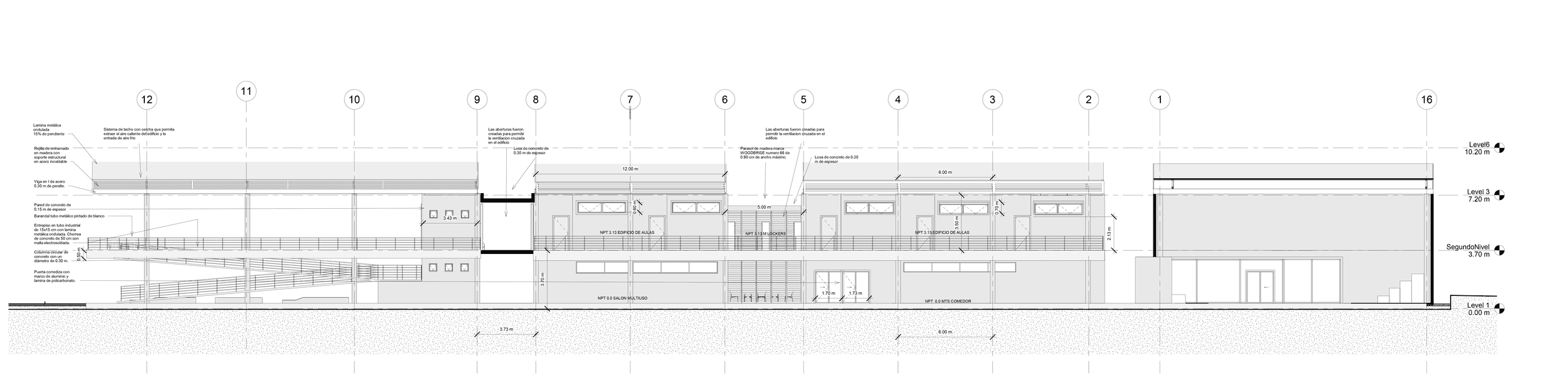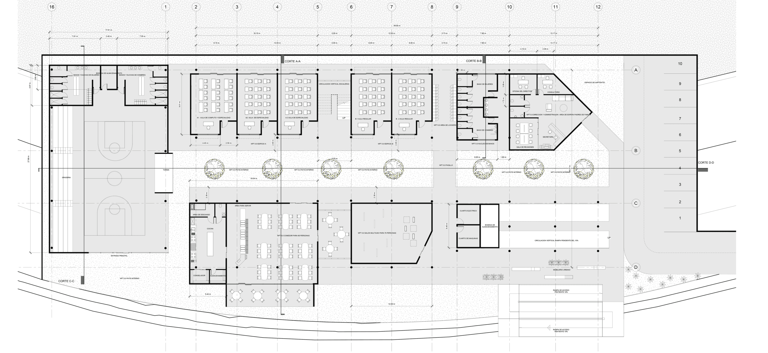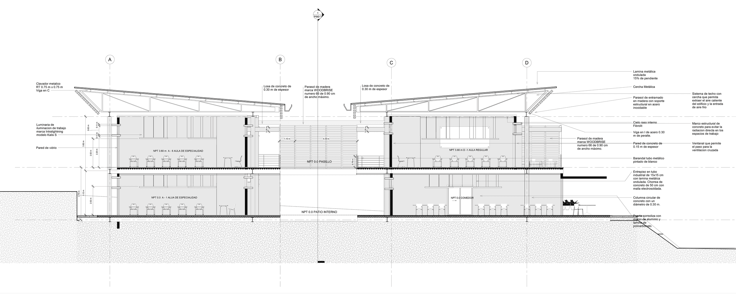 The project involves the creation of the new Caldera Technical High School, situated in Puntarenas. Given the area's extreme weather conditions, I have implemented various sustainable design features, including passive ventilation, passive daylighting systems, and other critical strategies aimed at minimizing the building's impact on the environment.
